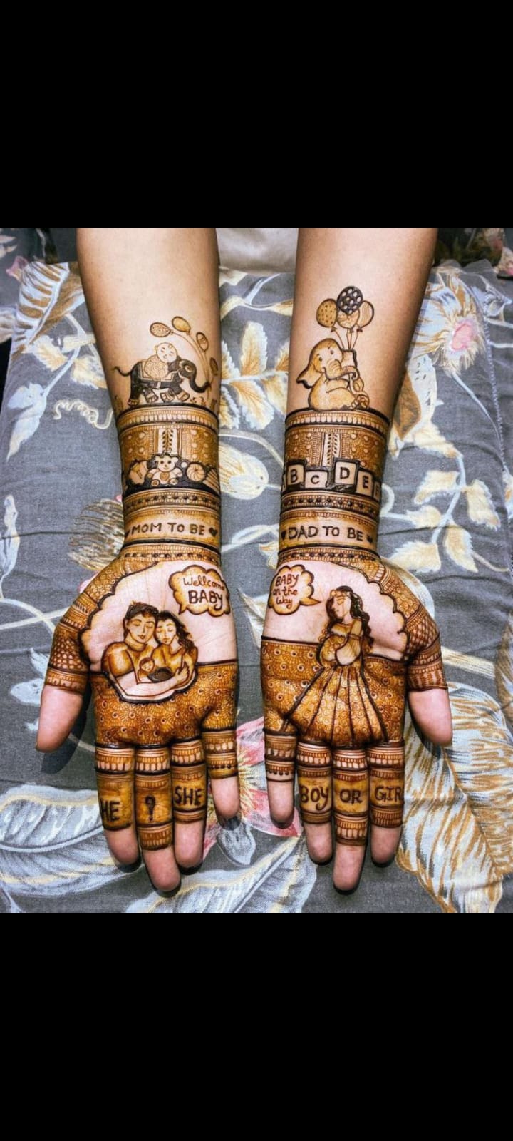 • Full Hand & Feet Coverage: Light and elegant designs covering palms, backs, wrists, arms, ankles, and feet, tailored for a baby shower theme.